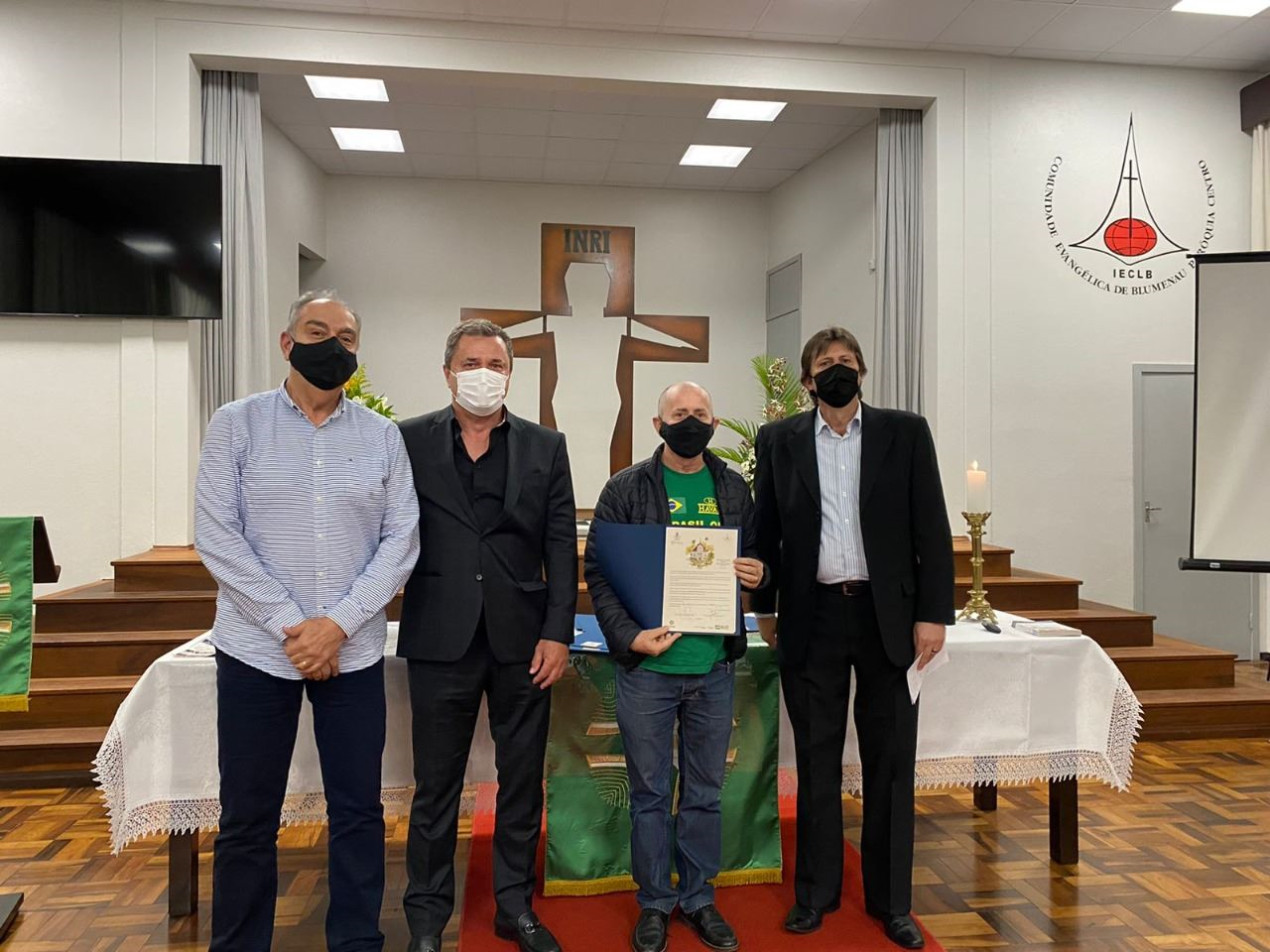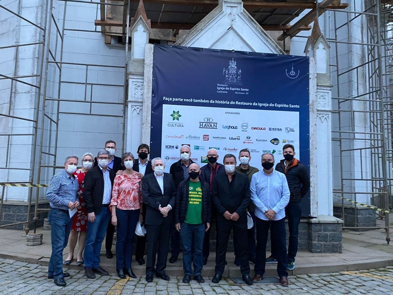 The restoration works of Espirito Santo Church, in Blumenau (SC), are progressing and the Lutheran Parish received this Thursday, 23rd, project donors to present how the works are progressing. Havan is among the companies that contributes with the project and the event also marked the church’s 144th anniversary.